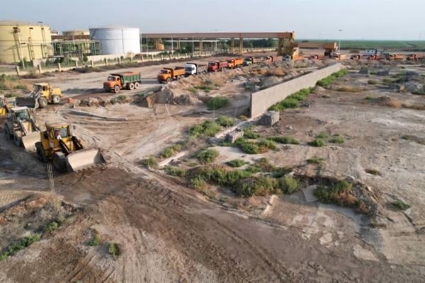 وبدأت عمليات الحفر وبناء الجدران وفروع المياه والكهرباء والغاز لإنشاء البنية التحتية للمصنع